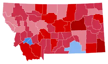 | Deer Lodge | 1,901 | 34.53% | 3,539 | 64.29% | 65 | 1.18% | -1,638 | -29.75% | 5,505 |