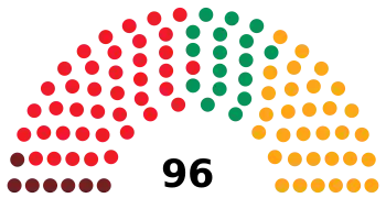 Last election 51 seats, 50.5% 34 seats, 34.1%[lower-alpha 1] 0 seats, 3.1%