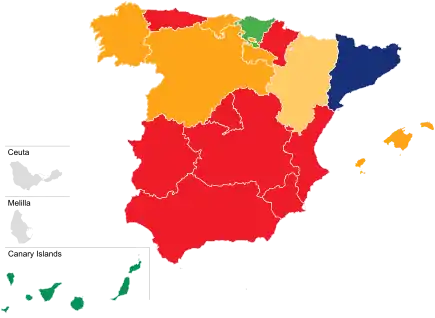Determination of election day varied depending on the autonomous community, with each one having competency to establish its own regulations. Typically, thirteen out of the seventeen autonomous communities—all but Andalusia, the Basque Country, Catalonia and Galicia—had their elections fixed to be held within sixty days from the day of expiry of the regional assemblies, together with nationwide local elections.[1][2][3]