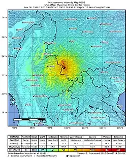 - 1 2 National Earthquake Information Center. "M 7.7 - Myanmar-China border region". United States Geological Survey. Archived from the original on 2019-11-06. Retrieved 2021-02-23.