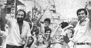 Demonstration of the Authentic Radical Liberal Party headed by Domingo Laíno (left), the main leader of the opposition to the regime, on 3 February 1989, in support of the overthrow of Stroessner