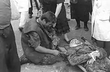 The Military Council, which represents the opposition, declared during the conflict that the majority of pro-Gamsakhurdia soldiers were 18 or 19 years old and were coerced into fighting.[39] According to the Council, there was only a very small group of armed fighters belonging to the government's OMON, a special, highly trained branch of the National Guard.[39] Some of those who fought on Gamsakhurdia's side were reportedly devoted female followers of his dressed in black, known as "furies" or the "Black Pantyhose Battalion".[43][44] A youth militia from the mountainous region of Svaneti, nicknamed "Lemi" (ლემი, or "Lion" in Svan) also fought for the president.[44]