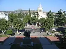 Since the end of September 1991, Tbilisi is a divided city. The Gldani, Nadzaladevi, and Didube neighborhoods, as well as the south and center parts of Rustaveli Avenue (housing government buildings) remain under the military control of Zviad Gamsakhurdia, who has started to isolate himself within the Parliament building. Neighborhoods located between the Marx-Engels-Lenin Institute (29 Rustaveli Ave.) and the Tbilisi State University (1 Chavchavadze Ave.) are loyal to the opposition, while the Mkhedrioni militia uses the rest of Chavchavadze Avenue as its training ground.[27] In the meantime, the neighborhoods of Vake and Saburtalo, populated by members of the Soviet intelligentsia, remain neutral.[27]