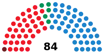 Last election 34 seats, 38.3%[lower-alpha 1] 32 seats, 34.0% 18 seats, 19.4%