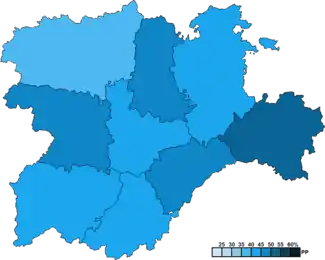The Cortes of Castile and León were the devolved, unicameral legislature of the autonomous community of Castile and León, having legislative power in regional matters as defined by the Spanish Constitution and the Castilian-Leonese Statute of Autonomy, as well as the ability to vote confidence in or withdraw it from a regional president.[1] Voting for the Cortes was on the basis of universal suffrage, which comprised all nationals over 18 years of age, registered in Castile and León and in full enjoyment of their political rights.