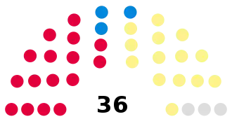 Party Seats Gains Losses Net gain/loss Seats % Votes % Votes +/−