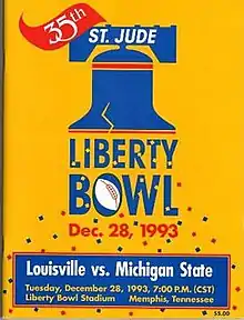 The 1993 Liberty Bowl was a college football bowl game played at Liberty Bowl Memorial Stadium in Memphis, Tennessee, on December 28, 1993, as part of the 1993–94 bowl season. The 35th edition of the Liberty Bowl, the game matched the Michigan State Spartans of the Big Ten Conference, and the Louisville Cardinals, a football independent. Louisville defeated Michigan State, 18–7.[1][2][3][4]