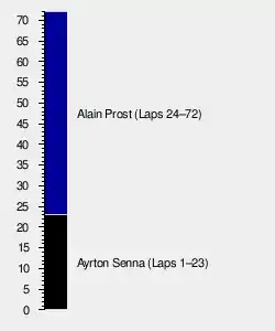 Prost attacked Schumacher, took second on lap 13 and set off after Senna. Five laps later, he attacked into the first corner but Senna took the inside and defended. However, Senna could not do anything when Prost attacked on lap 25 with the inside line. He took the lead and motored off. Schumacher also passed Senna to take second soon after. Both of them pitted unlike Prost, but Senna was quicker and rejoined ahead.
