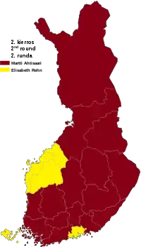 Presidential elections were held in Finland on 16 January 1994, with a second round on 6 February.[1] It was the first time the President had been solely and directly elected by a popular vote. Martti Ahtisaari defeated Elisabeth Rehn in the second round.[2]