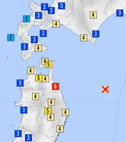 3. 1 2 Disaster Prevention Aomori Prefecture. "Summary of earthquake" (in Japanese). Archived from the original on 2012-01-31. Retrieved 13 July 2011.