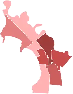 | Ward 7 | 28.96% | 568 | 49.46% | 970 | 20.91% | 410 | 0.31% | 6 | 0.25% | 5 | 0.10% | 2 | 100.00% | 1,961 |