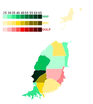 | Grenada United Labour Party | 11,608 | 26.55 | 2 | –2 | |