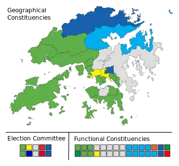 The electoral bases were largely expanded under the 1994 Hong Kong electoral reform carried out by the last colonial governor Chris Patten as the last step of democratisation as following:[1]