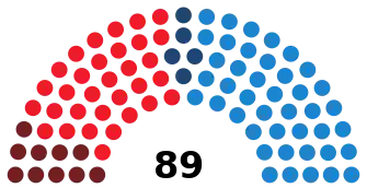 Last election 31 seats, 27.8% 45 seats, 42.8% 6 seats, 9.3%[lower-alpha 1]