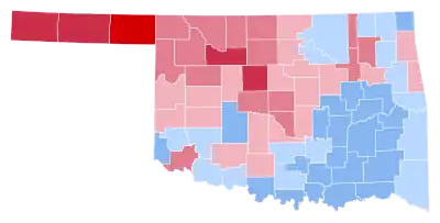 As of the 2020 presidential election, this remains the last time that a Democratic presidential candidate has carried any of Oklahoma’s congressional districts (in this case, the 2nd and 3rd districts in the rural east), as well as the last election in which a Democratic presidential candidate carried the entirety of the Choctaw Nation, a majority of the Chickasaw, Cherokee and Creek Nations, or the counties containing the Seminole, Pawnee and Osage Nations.