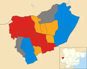 Both the Conservatives and Liberal Democrats gained 4 seats from Labour, reducing Labour to only holding 5 seats at the election, although they retained a majority on the council.[3] Among the Labour councillors to be defeated was the chairman of the council John McCree in Brays Grove ward.[3] Overall turnout at the election was 30.86%,[4] up from 29.85% at the 1999 election.[5]