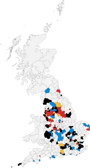 All 36 metropolitan boroughs, 27 out of 46 unitary authorities,