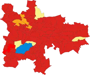![]() Colours indicate winners in each ward Labour