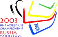 The 2003 IIHF World U18 Championships were held in Yaroslavl, Russia. The championships began on April 8, 2003, and finished on April 18, 2003. Games were played at Arena 2000 and Avtodizel Arena in Yaroslavl. Canada defeated Slovakia 3–0 in the final to claim the gold medal, while Russia defeated the United States 6–3 to capture the bronze medal.