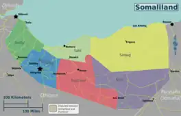 Regions of Somaliland including the disputed regions of Eastern Saang and Sool.