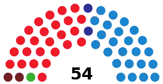 Last election 24 seats, 35.3% 27 seats, 39.7% 4 seats, 8.0%[lower-alpha 2]