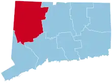 All counties but Litchfield County and congressional districts went Democratic. Litchfield County is regarded as the most conservative county in the state, along with adjacent Fairfield County to the south, although this county does tend to vote majority Democratic. Hartford County, Middlesex County, New Haven County, and New London County each are regarded as the most loyally democratic counties in Connecticut. The Republican Party's last presidential victory in Connecticut was during the 1988 election of George H. W. Bush. However, Kerry's victory in Connecticut was not as large as Al Gore's lead in 2000, when the then-vice president won the state by 17.47% percent and a majority of all the state's counties. However, in 2000 Gore's running mate was Connecticut Senator Joe Lieberman.