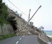 The Fukuoka earthquake (福岡県西方沖地震, Fukuoka-ken Seihō Oki Jishin) struck Fukuoka Prefecture, Japan at 10:53 am JST on March 20, 2005, and lasted for approximately 1 minute. The Japan Meteorological Agency (JMA) measured it as peaking at a magnitude of 7.0, whereas the United States Geological Survey (USGS) reported a magnitude of 6.6.[1] The quake occurred along a previously unknown fault in the Genkai Sea, North of Fukuoka city, and the residents of Genkai Island were forced to evacuate as houses collapsed and landslides occurred in places. Investigations subsequent to the earthquake determined that the new fault was most likely an extension of the known Kego fault that runs through the centre of the city.