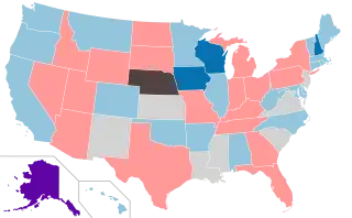 | Nebraska | 25[lower-alpha 4] | 49[lower-alpha 4] | 51[lower-alpha 4] | 4 | N/A (unicameral) | |||
