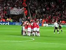 The previous season was a transitional period for Arsenal. The club transferred a number of first-team players such as defenders Sol Campbell and Lauren to Portsmouth and winger Robert Pires to Spanish club Villarreal.[4] After lengthy negotiations, Ashley Cole moved to Chelsea on the final day of the summer transfer window, in exchange for £5 million and defender William Gallas.[5] Arsenal played their home games at the newly constructed Emirates Stadium and drew their first game against Aston Villa.[6] After a defeat by Bolton Wanderers, manager Arsène Wenger admitted that his team were unlikely to make a serious challenge for the Premier League.[7] Despite being a young and inexperienced team, however, Arsenal reached the final of the League Cup, where they were beaten 2–1 by Chelsea.[8] Elimination in the UEFA Champions League in the knockout stage (two-legged matches played home and away) and FA Cup in the space of four days followed – the club lost three games in succession for the first time since October 2002.[9] Arsenal eventually finished fourth in the league, level on points with third-placed Liverpool but lost out on goal difference +30 to +28.[10]