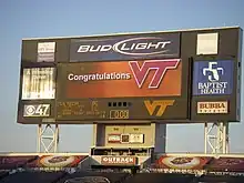 The final scoreboard of the 2007 ACC Championship Game records the 3016 final score and congratulates Virginia Tech on its victory.