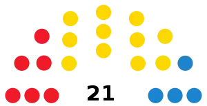 The following table lists party control in the Island Cabildos.[1] Gains for a party are displayed with the cell's background shaded in that party's colour.
