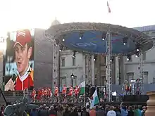 A total of 21 teams were invited to the 2007 Tour de France.[2] Each team sent a total of nine riders to participate in the Tour, which brought the starting total of the peloton to 189 riders.[3] The presentation of the teams – where each team's roster are introduced in front of the media and local dignitaries – took place at Trafalgar Square in London, the day before the opening prologue held in the city.[4]