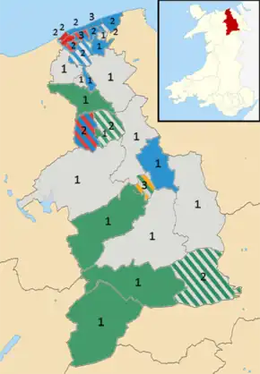 - 1 2 3 4 5 6 7 8 9 10 11 12 13 14 15 16 17 18 19 20 21 22 23 24 25 26 "Denbighshire County Council Election Results 1995-2012" (PDF). The Elections Centre, Plymouth University. Retrieved 14 November 2020.