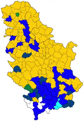 - ↑ The Socialist Party of Serbia won 12 seats, the Party of United Pensioners of Serbia 5 and United Serbia (3)