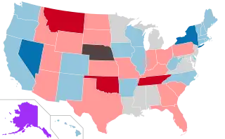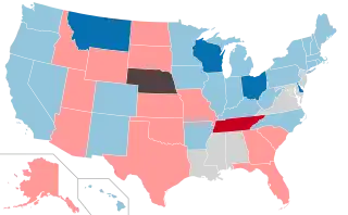 Tennessee 16-16-1[lower-alpha 1] R 19-14 Republican Takeover