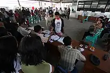 Candidates had to register from 10–16 May, with medical checks, which they all passed,[36] from 11–15 May.[37] The candidates were officially announced on 28 May[38] and drew their ballot numbers at the KPU building on 31 May.[39] Megawati–Prabowo drew number 1, SBY–Boediono number 2 and Kalla–Wiranto number 3.[39]