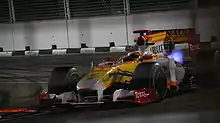The circuit was also reprofiled slightly, including modifications to turns 1, 2, 3, 13 and 14 to aid overtaking, and also at turn 10 where high kerbs caused many accidents in 2008.[2] The entrance and exit to the pit lane were also changed. The cars entered the pit lane before turn 22 while the most significant change was the exit of the pits with the cars now joining after turn 1.[3] As a result, the total length of the circuit increased by 6 metres.