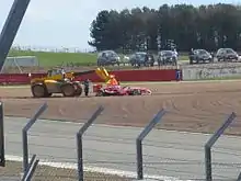 PSV Eindhoven (Narain Karthikeyan) car retrieved mid-race after spinning into the gravel at Superleague Formula Round 1