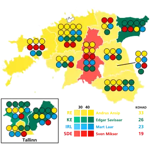101 seats in the Riigikogu 51 seats needed for a majority | |||||||||||||||||||||||||||||||||||||||||||||||||||||||||||