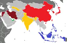 | East Asia (1+2+1) | Gulf (2+1) | Middle Asia (2) | Southeast Asia (2+1) | West Asia (1+2+1) |