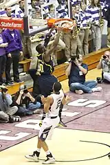 Adidas warm up shirts were created and were first worn on November 21, 2012, before Michigan's NIT Season Tip-Off game against the Pittsburgh Panthers. The shirts use the school colors with blue with maize lettering.[68] On February 12, 2013, when Michigan played the first of two regularly scheduled rivalry games against Michigan State, students in the Izzone at the Breslin Center wore T-shirts with "YOU OFF" printed in Spartan colors (green and white). Michigan State went on to win the game by 23 points.[69]