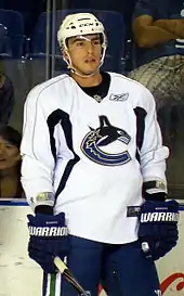 With training camp starting on January 13, 2013, Vancouver recalled 12 players from the Wolves.[38][39] They also bolstered their defence corp by signing NHL veterans Jim Vandermeer and Cam Barker to one-year contracts.[40] At the forward position, the Canucks were dealing with injuries to their second line. Centre Ryan Kesler, who was recovering from off-season surgeries to his shoulder and wrist, would be unable to start the season; it was unknown how long he would be out rehabbing the injuries.[41] Winger David Booth was injured during the team's physicals to start camp.[42] After having an MRI done on his injury, it was announced that Booth would miss four to six weeks recovering.[43] Alain Vigneault stated that he hoped to keep his third and fourth lines intact, leaving the possible replacements as, Andrew Ebbett, Jordan Schroeder and Zack Kassian. Schroeder was a first-round draft pick for Vancouver in 2009, but had never played in an NHL game. Ebbett a utility, journeyman forward played in 18 games for Vancouver in 2011–12. While the second-year Kassian produced only four goals in his rookie campaign.[44] Vancouver elected to start the season with Ebbett and put Kassian on their second line.[45] In order to keep defensive depth, the Canucks decided to keep nine defenceman. Schroeder was sent back to the minors in order to comply with the 23-man roster and because he would not need to clear waivers.[46]