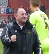 Yeovil began April, with an Easter Monday fixture away at Notts County, Yeovil claimed a crucial 2–1 victory which reinvigorated their play-off aspirations courtesy of goals from topscorer Paddy Madden and a quality free-kick from Middlesbrough loanee Matthew Dolan on his first start of his second loan spell.[169] On 4 April, the club announced that it would axe its youth academy at the end of the season, citing expense and a lack of progress on a proposed Huish Park development plan as reasons. This followed the closure of the Centre of Excellence at the end of the 2011–12 season which had been closed because the investment and facilities required by the Premier League's Elite Player Performance Plan scheme were not available.[170] On 6 April, Yeovil faced Shrewsbury Town at home and won a tight game 2–1 thanks to a James Hayter penalty and a "stunning solo effort" from top goalscorer Paddy Madden.[171] Madden's performance against Shrewsbury earned him a place in the Football League One Team of the Week.[172] The following week Yeovil faced Stevenage away from home, before the game it was announced that left-sided player Ben Gordon's short term deal had not been renewed so had left the club after only three appearances.[173] A much improved second half performance against Stevenage saw the Glovers run out convincing 2–0 victors, with Sam Foley and Hayter's 15th goal of the season the difference, the victory confirmed Yeovil's place in the end of season play-offs.[174] Foley was recognised for his performance against Stevenage with a place in the League One Team of the Week.[175] On 16 April, Gary Johnson faced his son Lee's Oldham Athletic side, they became only the second father and son to face each other as opposing managers in the Football League. Oldham won the match 1–0 courtesy of a goal from Matt Smith.[176] Yeovil faced Crewe Alexandra in their final home match of the league season, a game which Yeovil won 1–0 thanks to an early Joe Edwards goal,[177] goalkeeper Marek Štěch's man of the match performance was recognised in the League One Team of the Week.[178] The final game of the regular season saw a trip to already relegated side Bury, a disappointing first half performance saw Yeovil lose the game 3–2,[179] despite the defeat Yeovil confirmed their record high finishing position of 4th in League One and confirmed they would face Sheffield United in the League One play-offs. Another solid run of form in April earning 12 points from a possible 18, and a record of four wins, one draw and one defeat was enough for Gary Johnson to be nominated for Manager of the Month,[180] but lost out to Bournemouth manager Eddie Howe.[181]