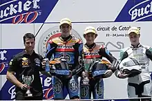 Podio- Álex Márquez, Pecco Bagnaia, Amato.