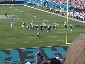 The Carolina Panthers on offense against the Denver Broncos in week 10 of the season