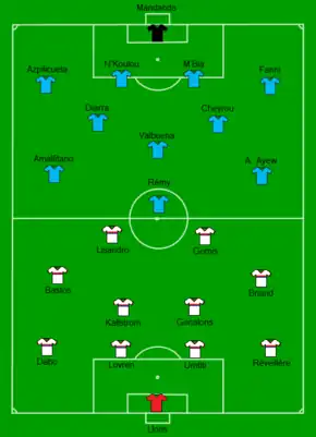 Marseille captured its third straight league cup title after defeating Lyon 1–0 after an extra time goal from Brandão.[5][6] The Man of the Match award was given to Cameroonian international Nicolas N'Koulou. Marseille secured a UEFA Europa League place for the 2012–13 season.