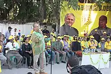 The dispute was more complicated in the UNDERTIM, from which two electoral lists were also submitted by different party wings.[25] The CNE again set an ultimatum, but the groups around party leader Cornelio Gama and General Secretary Reis Kadalak could not agree on a common list, which led to the exclusion of UNDERTIM from the elections on 1 June.[26] However, this was again withdrawn by the Court of Appeal on 4 June after the two UNDERTIM wings were able to agree on a common list.[27][28] A prominent UNDERTIM candidate is Angelita Pires, former presidential candidate and lover of the dead rebel leader Alfredo Reinado.[29]