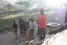 The election campaign period was largely peaceful. On 23 June, two men were arrested by the police for throwing stones at cars belonging to a Fretilin campaign group. According to police, the perpetrators were not supporters of another party, but members of a group known for causing trouble.[39] As of 3 July, only 14 written complaints about violations during the election campaign had been filed with the CNE, mostly involving the destruction of campaign material such as party flags. Three complaints were forwarded to law enforcement agencies.[40][41] The most serious incident was an arson attack on the CNRT office in Ossu (Viqueque municipality).[42] On several occasions, the CNE criticised the unauthorised use of children at election campaign events.[43] Shortly before the end of the regular election campaign, PD party leader Fernando de Aráujo warned at a campaign appearance in Baucau that some of the major parties might try to buy votes for 20 to 50 US dollars.[44] PUN leader Fernanda Borges also accused the big parties of buying many votes in the countryside. The CNRT in particular had thrown a lot of money around, the origin of which was not clear.[45] The head of the EU observer mission Nuno Melo also reported cases of vote buying.[46][47]