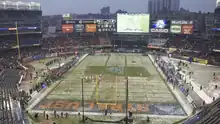 The 2012 New Era Pinstripe Bowl was a post-season American college football bowl game held on December 29, 2012 at Yankee Stadium in the New York City borough of The Bronx in the United States. The third edition of the Pinstripe Bowl began at 3:15 p.m. EST and aired on ESPN. It featured the West Virginia Mountaineers from the Big 12 Conference against the Big East Conference co-champion Syracuse Orange and was the final game of the 2012 NCAA Division I FBS football season for both teams. Both the Orange and the Mountaineers advanced to the game after accomplishing 7–5 records in the regular season.