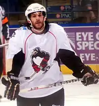 Zolnierczyk and Conner, each of whom had three goals in the first three games of the season, were called up to the Pittsburgh Penguins shortly afterward.[33][34] Wilkes-Barre/Scranton next won three games in as many days from October 18 to 20,[35] including a 3–2 comeback victory over the Worcester Sharks on October 19 in which they scored three goals in the third period, two of which came from Tom Kühnhackl.[36] They also defeated the Manchester Monarchs 4–3 the next day when Mikkelson scored within 22 seconds of the overtime period. Gibbons had two goals and two assists,[37] marking his fourth multi-point game in six games.[29] Forward Jayson Megna was recalled to the Pittsburgh Penguins on October 24, while Conner and Zolnierczyk were sent back down.[30]